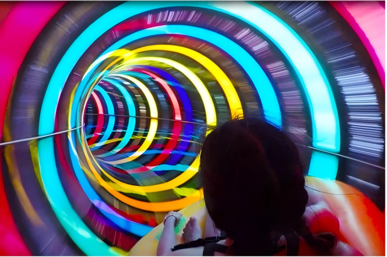 - Dual Stimulation of Speed & Senses: Riders slide through the tunnel at a moderate speed, experiencing the thrill of rapid gliding while enjoying the gorgeous light and shadow show. The combination of speed, light, shadow and water flow brings a multi-sensory immersive experience that is different from traditional slides.